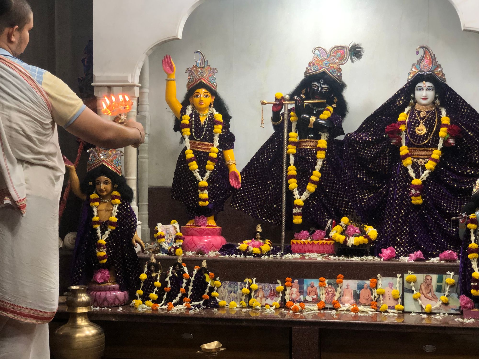 Okay, arati is just now beginning here at Suvarna Vihara Gauḍīya Maṭha. Here’s a picture of Śrī Śrī Gaura Rādhā Mādhava right now: