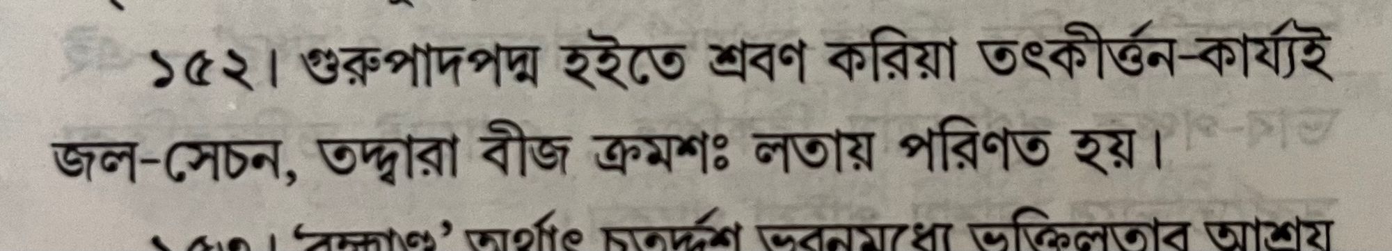 "What we are hearing from Guru-padpadma, the activity of performing kÄ«rtana of that ā the kÄ«rtana of the words we heard from Guru-pÄdpadma ā is the watering. With that water, the seed gradually develops into a vine."
